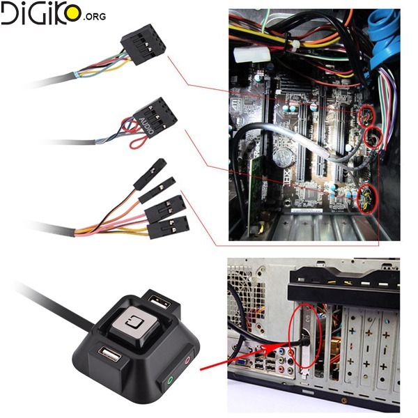 پنل سوئیچ پاور و ریست و پورت هدفون و میکروفن و 2 پورت USB 2.0 اصل را از فروشگاه دیجیکو خرید نمایید.